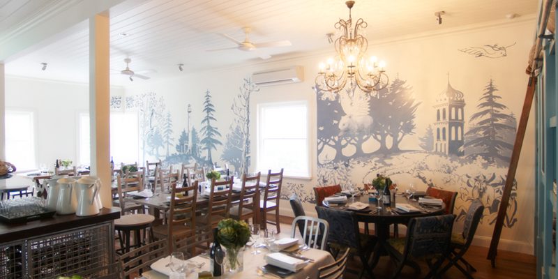 A converted caretakers cottage nestled high on Wombat Hill amongst the Botanic Gardens; Wombat Hill House is decorated with eclectic furnishings and a large mural of the “enchanted forest” on one wall. The cafe has several areas including indoor seating by the open fire, the sun drenched pergola / bar and the pretty kitchen garden.